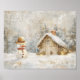 Poster Snowman d'hiver peinture de la scène de Noël rusti