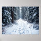 Poster Snowy Winter Forest Path With Footprints Hiking