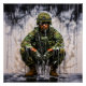 Un rendu numérique d'un soldat assis dans le style de peinture dégoulinante.