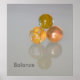 Des billes en verre orange équilibrées en triangle. Réflexion sur la surface. "Solde"