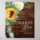 Ce panneau de livre d'or en bois tournesol de campagne audacieux est parfait pour votre mariage champêtre bohème classique simple dans votre arrière-cour en été. Le design présente un bouquet de tournesols orange rustiques et jaunes dorés aquarelles vintage, de verdure d'eucalyptus vert sauge moderne élégante, et une rose ivoire blanche. Le design est idéal pour un mariage automnal décontracté en plein air minimaliste. N'hésitez pas à nous contacter pour toute question concernant le design du produit ; à la vôtre !