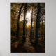 Une belle photo avec un soleil d'automne dans la forêt. Le soleil brille à travers les feuilles jaunes dans la forêt foncée, créant de longues ombres sur le sol, et un peu de lumière bleue. Ajoutez du texte ou de la personnaliser si vous le souhaitez.