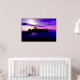 Un seul arbre se dresse seul sur une petite masse terrestre au milieu d'un océan violet contre un ciel violet/rose. Un paysage numérique original intitulé "Solitude"