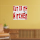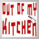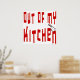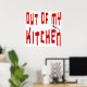 Out of My Kitchen Funny Disant en lettres rouges avec un nettoyant à viande dans la lettre n.