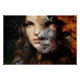 Female portrait with a face in fragmented layers, revealing diverse textures and colors, suggesting multiple facets of identity and emotion.