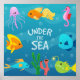 Affiche illustrée d'une illustration artistique de quelques poissons sous la mer. Customisez cet objet ou achetez tel quel.