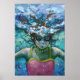 Sous Water Art imprimés, accessoires et cadeaux présentent notre peinture originale de Traci Van Wagoner d'une fille portant un maillot de bain rose et des lunettes, nageant sous l'eau et soufflant des bulles. Faites un plongeon aujourd'hui et profitez de l'été avec notre art amusant d'un nageur sous-marin. Que l'été commence !