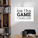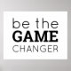 Soyez le Changer de jeu Encouraging Words Any Color. Design typographique audacieux avec un message encourageant Be The Game Changer en lettres noires sur blanc.