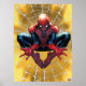 Regardez cette bande dessinée de Spider-Man assis au centre d'une toile, tirant des sangles de ses poignets.