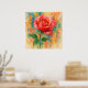 Oeuvre d'un rose en fleurs dans un style de peinture aquarelle. L'élégance délicate d'un rose unique dans un style aquarelle dynamique et dynamique. Le sujet central, un rose luxuriant avec des pétales superposés, est rendu dans un spectre doux de roses et de rouges, avec des notes subtiles de jaune et blanc qui en soulignent la forme. La tige et les feuilles sont rendus dans des verts riches, fournissant une ancre gracieuse pour la floraison. L'arrière - plan est coloré et expressif. Un bain animé de bleus brillants, de jaunes ensoleillés et d'oranges chaudes créent une toile de fond abstraite qui se sent à la fois énergique et sereine. Parfait pour ajouter une touche de romantisme et d'art à n'importe quelle chambre et comme un cadeau réfléchi pour les amateurs de fleurs. Idéal pour tous ceux qui apprécient le charme de l'art botanique. Cette pièce peut être customisée, imprimée, ou téléchargée.