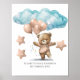 Un adorable bébé ours brun rose avec ballons et étoiles avec nuages bleus au-dessus d'elle. Ajoutez le nom et l'anniversaire de vos filles. Une affiche parfaite pour la crèche.