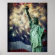 Beau composite photo avec la Statue de la Liberté contre un drapeau américain et arrière - plan pyrotechnique. L'image est recouverte d'un motif grincheux pour un look nostalgique ancien. Idéal pour toutes les fêtes patriotiques américaines. Cette image est disponible sur de nombreux produits Zazzle.