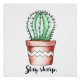 Poster avec aquarelle Poted Cactus avec le message "Stay sharp" dans la police de script moderne.