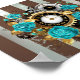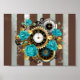Poster Steampunk Clock and Turquoise Roses on Striped