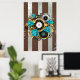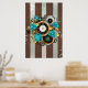 Poster Steampunk Clock and Turquoise Roses on Striped