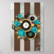 Poster Steampunk Clock and Turquoise Roses on Striped