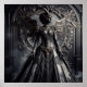 This detailed steampunk fantasy artwork of the fashion for a darkness demon with lace-like wings in shades of black and gray on this artwork poster.