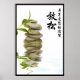 Stone Zen Relaxant avec poster en bambou. Avec caractères chinois pour se détendre et profiter de votre séjour.