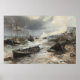 Découvrez les suites brutes de la fureur de la nature avec cette impression d'art puissamment évocatrice, son design saisissant l'atmosphère dramatique et les textures riches qui rappellent une peinture à l'huile de J.M.W. Turner. Les petits bateaux de pêche, leurs voyages se sont brusquement terminés, ont été lavés et endommagés le long du rivage. Les coques peuvent être éclaboussées, les mâts cassés, les filets enchevêtrés - témoignage silencieux de l'immense puissance de la tempête. Le ciel au-dessus pourrait encore être turbulent, ou peut-être un calme fragile revient, jetant une lumière poignante sur l'épave. La scène exprime un sentiment de perte et les dures réalités d'une vie vécue par la mer. Cette oeuvre est une représentation convaincante de la force indomptée de la nature et de l'esprit persistant, quoique parfois battu, des communautés côtières. Cette oeuvre d'art présente un design unique et original, offrant un énoncé artistique distinctif. Sa qualité exceptionnelle et sa représentation dramatique et atmosphérique en font une pièce frappante pour ceux qui apprécient les scènes maritimes ou l'art qui raconte une histoire puissante.