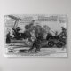 L'artiste montre qu'il s'agit d'une arme décisive pour les Démocrates contre Clay et sa plate-forme pro-Banque. La "batterie masquée" est un gros canon tiré par Polk et l'diminutif sénateur démocrate du Mississippi Robert J. Walker. La lettre de Walker en février défendant l'annexion avait placé la question du Texas au premier plan de la campagne. Le canon a été "masqué" ou caché des Whigs à gauche par deux rangées de chevaliers, dont Van Buren et Calhoun (portant des drapeaux de leurs états respectifs, New York et Caroline du Sud) et John Tyler et Richard M. Johnson. Dans un ballon au-dessus de la scène apparaît les "ordres généraux" d'Andrew Jackson sur la stratégie de campagne : "Que l'ennemi dépense son feu sur les candidats vétérans à Armor [Van Buren, Calhoun, et al], dressés avant la Batterie afin de le cacher parfaitement. Puis, lorsque l'ennemi est prêt à attaquer, ouvrez soudainement à droite et à gauche en deux fois plus vite, et laissez aller le gros canon chargé du Texas." Polk, allumant la charge, dit "Hélas pauvre Harry! Vous n'auriez pas dû vous tenir à côté de cette Banque et vous opposer à notre plus jeune État frère qui nous demande notre aide." A gauche, Henry Clay, Daniel Webster et d'autres Whigs sont abattus par le boule de canon "Texas". L'argile est enfoncée dans une colonne de la U.S. Bank, qui brise et renverse le bâtiment. Clay : "Oh! qui aurait cru que derrière ces chefs, ils avaient un commandant en chef et une batterie masquée, avec mon vieil ennemi [c.-à-d. Polk], je d—d à H—l, sur l'avenue Pensylvania. Comment est-il venu ici ? Je suis un cocon perdu !" Clay fait référence à son éclat célébré contre le président de la Chambre Polk en 1838 (voir "Scène à Washington", n° 1838-16). Le colistier de Clay, Theodore Frelinghuysen, apparaît à l'extrême gauche comme un diable en robe de bureau, alourdi par un immense "sac de mensonges sur les candidats Loco Foco qui n'ont pas encore payé pour eux". Il dit : "Le pilier principal de la Banque a été brisé ! qui va me payer tous les mensonges que j'avais entreposés à Washington contre les candidats Loco Foco ? Il est trop tard pour en parler à Polk & Dallas, et je ne serai jamais payé à moins que je ne prenne mes hommes sur qui la Banque tombe."