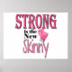 Cette impression présente un design textuel : 'STRONG is the New Skinny' avec des gants de boxe roses qui disent 'I kick' sur leur bracelet. Le mot Strong est grand et rose vif tandis que Skinny est grand et mince avec la couleur rose pâle. Conçu par Gloves On. Image154