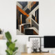 Art abstrait géométrique avec des formes ressemblant à des escaliers et des blocs architecturaux. Tons de noir, blanc et orange rouillé. Texture peinte sophistiquée. Idéal pour la décoration moderne et les bureaux. Conception structurelle jouant avec la perspective et la profondeur dans une composition élégante et contemporaine.