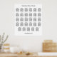 Stylish 29 Table Mariage Seating Chart Poster, s'il vous plaît personnaliser les noms du couple et les noms des invités ainsi que l'un des autres textes que vous souhaitez personnaliser. Une affiche minimaliste simple avec du texte noir moderne dans une disposition élégante sur un arrière - plan blanc élégant.