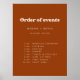 Poster Style rétro Burnt Orange Mariage Ordre des événeme