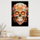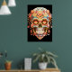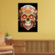 Sugar Skull design, in bright colors, on a wall poster. Celebrate Day of the Dead, November 1-2.