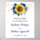 Ce panneau mariage présente une aquarelle avec des tournesols, des roses bleus, du feuillage et des lampes à cordes. Personnalisez-le avec votre propre texte. Ce produit fait partie d'une collection de suites mariages avec des produits correspondants. Visitez notre magasin ou consultez la page de collection pour voir la gamme complète.