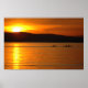Deux kayakistes de mer sont encadrés par un beau coucher de soleil doré sur l'île de San Juan. Un poster parfait pour égayer n'importe quelle chambre !