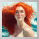 Jolie dame aux cheveux rouges mouillés et taches de rousseur nager dans le soleil d'été art IA.