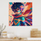 Enfant d'anime en super-héros bleu et rouge avec cape wall art.