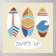 SURF ! Je d'ici juin Erica Vess. Dispose de trois planches de surf avec des designs différents et amusants et "Surf Up" phrase au bas de l'image.