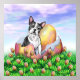 Célébrez Pâques avec cette éclosion de Boston Terrier d'un oeuf coloré avec tulipes de coordination qui pousse tout autour.