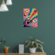 Cette affiche vous transporte dans un monde où la nostalgie rencontre l'irréel, centré sur une caméra Polaroid rétro classique qui agit comme une machine de rêve. Au lieu de capturer des souvenirs, il éjecte une "parade cosmique" fantasque de planètes vibrantes, de lunes et de corps célestes rayés de bonbons. Cette oeuvre est une combinaison magistrale de styles, mêlant les couleurs audacieuses et ultra-saturées et les lignes nettes de Pop Art avec un concept surréaliste qui défie la réalité. L'ensemble de la scène est ancré dans une esthétique des années 60, avec un arrière - plan de blocs de couleurs éclatants et de starbursts ludiques qui lui confèrent un aspect vintage distinctif. Le résultat est une pièce visuellement captivante qui est parfaite pour ajouter une touche d'énergie originale et créative à n'importe quel espace.