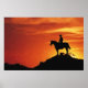 PEINTURE D'UN SEUL COWBOY SUR HORSEBACK AVEC LE CADRE SOLEIL DERRIÈRE LUI