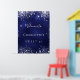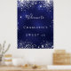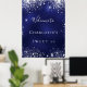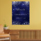 Une affiche de bienvenue pour une fête de 16e anniversaire de Sweet 16, girly et glamour. Un arrière - plan bleu marine avec d'élégantes parties scintillant en faux argent brille. La couleur bleue est inégale. Personnalisez et ajoutez un nom. Lettres blanches. Retour : aucune conception