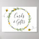 Bee thème signé pour "cartes et cadeaux". Personnalisez avec une ligne de texte personnalisé en écriture de script de calligraphie (illustrée par "Cartes & Cadeaux"), encadrée par une couronne d'aquarelle de marguerites et de verdure entourée d'abeilles en effervescence.
