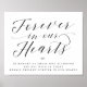 Élégant script de calligraphie Signal commémoratif Mariage - Pour toujours dans nos coeurs - En mémoire de ceux qui, bien que ne sont pas avec nous aujourd'hui, restent toujours présents dans nos coeurs. Connectez-vous dans de belles lettres fluides et votre texte personnalisé. Un design formel élégant mais simple en noir et blanc ou toute couleur arrière - plan que vous choisissez. Cliquez simplement sur le lien personnaliser plus loin, affiché sous la zone de personnalisation du texte à droite, et choisissez votre arrière - plan de couleur personnalisé. Ce modèle affiche permet de créer des ajouts étonnants à votre décor mariage rapidement et facilement. Les panneaux peuvent être agrandis, il y a de nombreuses tailles à choisir, ainsi que des options pour le cadrage et le matage personnalisés. Signalisation personnalisée mariage. ~ Vérifiez ma boutique ou ma collection ci-dessous pour des signes complémentaires pour votre mariage