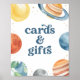 Montrez à vos amis et à votre famille où laisser leurs cartes et cadeaux à la fête d'anniversaire de votre petit avec cette élégante enseigne sur le thème de l'espace.