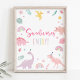 Ce design adorable présente des dinosaures dessinés à la main, des arcs-en-ciel et des feuilles aux couleurs pastel.
