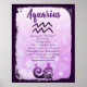Astrologie violette Signal Horoscope Aquarius Symbole Zodiaque dates et affiche des traits.
