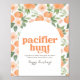 Invitations amis et famille pour participer à une chasse à la pacifier à votre baby shower avec ce panneau thématique citrouille.