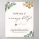 Quelle est la taille du ventre de maman ? Signe de jeu de baby shower avec l'aquarelle eucalyptus, ruche et abeilles pour correspondre à la collection d'abeilles d'or trouvée dans la boutique Adore Paper Co. Zazzle. Des feuilles de devis correspondantes sont également disponibles.
