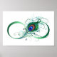 Le symbole de l'infinity with a bright, green, artistic peacock feather on a white background. Tattoo style.