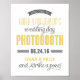 8 x 10" taille personnalisée photo de mariage affiche affiche peut être personnalisée avec les noms de mariée et de mariée et le texte de la date du mariage. Sur la pancarte on peut lire "Bienvenue au bal de mariage de Mariée et Groom, date mariage (xx.xx.xx), attrapez un accessoire et posez une pose !" Moutarde / jaune doré, gris fusain et blanc.