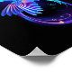 Glowing, purple infinity symbole with flying, luminous, blue hummingbird on black background. Néon.