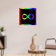 Simple dégradé arc-en-ciel couleur infinité symbole mathématique sur une affiche carré noir avec des accents de bordure arc-en-ciel ombre. Mise à jour le : 22/09/15