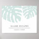 Le logo d'entreprise chic Island présente une paire d'illustrations en feuilles de monstère de style vintage, en vert clair de mer, avec votre nom ou nom d'entreprise et le titre sur le dessus en lettres grises modernes. Parfait pour les gestionnaires de location de vacances ou toute entreprise de l'île. Cette conception peut être achetée en téléchargement numérique instantané pour votre utilisation.
